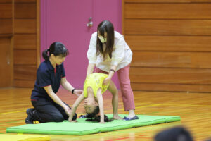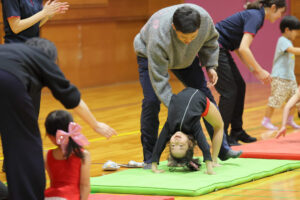 そして親子チャレンジでは、実際に保護者の方にも技の練習を